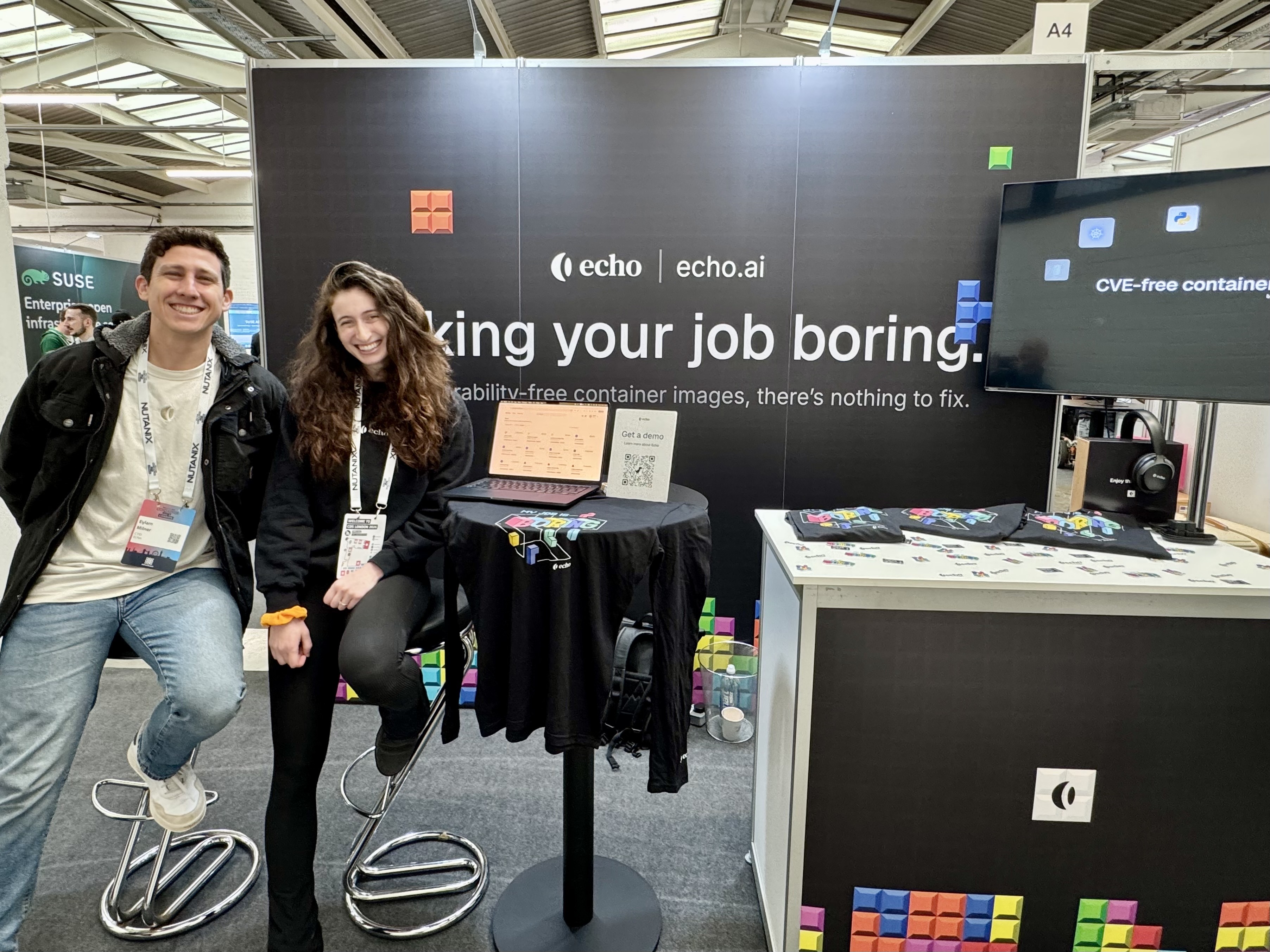 Echo's booth and swag have received high praise across the cybersecurity conference circuit - the brand phrases "Making your job boring" and "There's nothing to fix" have generated tremendous buzz and turned heads at events throughout the year. Black Hat USA is one of the most technically sophisticated audiences in security, which makes it one of the most natural fits for Echo's message: when your software ships without CVEs from the start, there is genuinely nothing to fix.